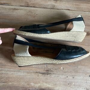 Gentle Souls Luci Black Leather Summer Wedge Women's Sandals size 10 EUC