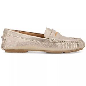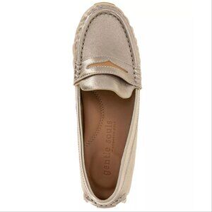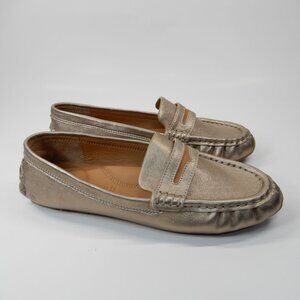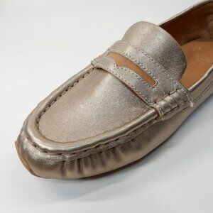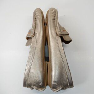 Gentle Souls Madison Driving Loafers Flats 7 Gravel Metallic Leather Comfort NEW