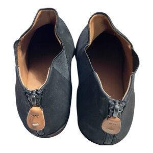 Cushioning, memory foam, and arch support - Elastic pouches - Almond toe - Back zip closure - 1" stacked heel - Nubuck leather upper - Leather lining, - Manmade sole.