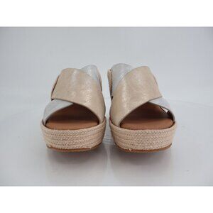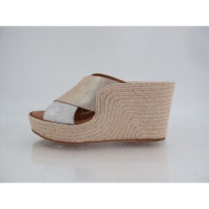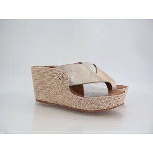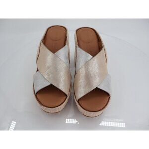 Gentle Souls Porto Slide Sandal Wedge Leather Silver Gold Leather Size 7.5