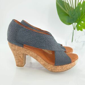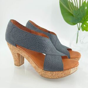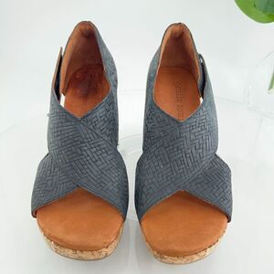 Gentle Souls Sun Dae Sandal Women's Size 6.5 Black Woven Platform Cork Leather