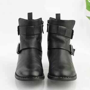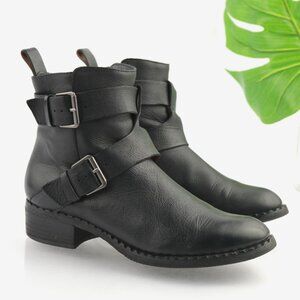 Gentle Souls Womens Best Moto Boot Size 8 Black Leather Buckle Block Heel Bootie