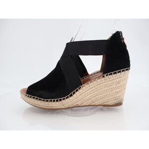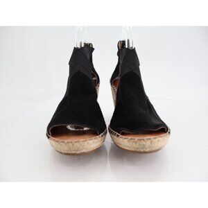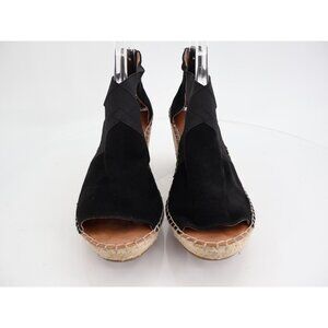 Gentle Souls Women's Colleen Sandal 8.5 Espadrille Wedge Cross Strap Black Suede