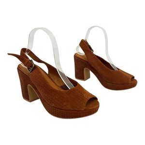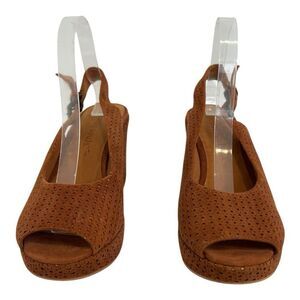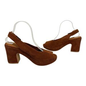 Gentle Souls Womens Size 9 Alter Eagle Suede Peep Toe Sling Back Heels