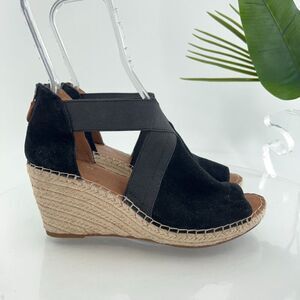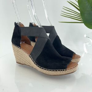Gentle Souls Women's Colleen Sandal Size 8 Espadrille Wedge Black Suede