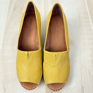 Gentle Souls by Kenneth Cole Butter Yellow Leather Wedge Espadrilles Sz 11M