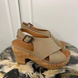 Leather upper cork platform sole sandal heel. Size 8. In excellent pre owned condition.