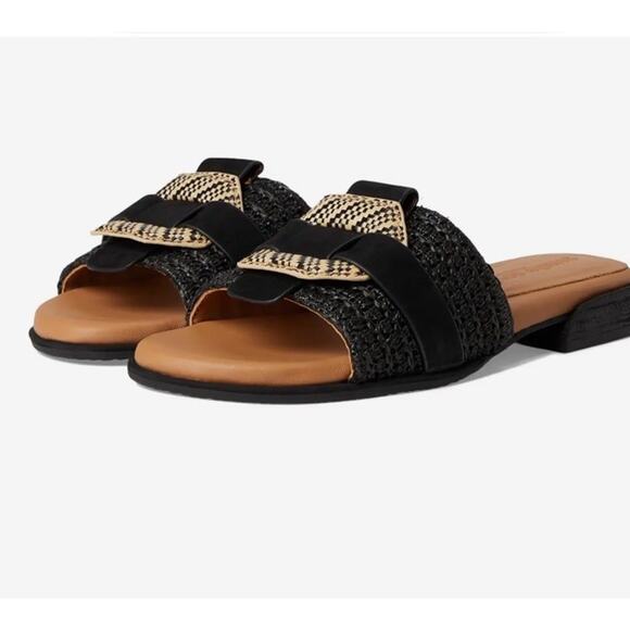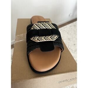 Gentle Souls by Kenneth Cole Women's Hudson Flat Sandal, Black Raffia, 9