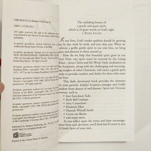 The apostle Peter wrote that a gentle spirit, not our outward appearance, is of great worth in God's sight. In our harsh and often heartless world, gentleness is a much-needed characteristic. With an emphasis on personal spiritual development, this daily devotional for women draws from the best writings of classic and contemporary Christian female authors. Paperback. Approximate Measurements: 4.25”x6.75”x1”