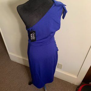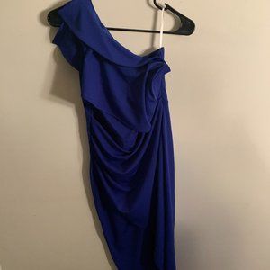 Gentle Warm Royal Blue Size L (US 12/14) One Shoulder Ruched Asymmetrical Midi