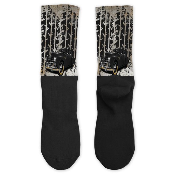 Gentlemen's Gray Black Rolls Royce Design Hand Pressed Cotton Athletic Socks