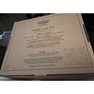 Gentlemen's Hardware Hand Kit, Brick Soap, Hand Salve And Nail Brush Gift Set. treat yourself, or the gent in your life, to this premium Hand Care Kit by Gentlemen's Hardware. This thoughtfully packaged set includes a 170g sandalwood-scented brick soap, a rich fragrance free hand salve and a sturdy double sided wooden nail brush with firm bristles. Perfect for hard working hands or anyone who appreciates a clean, classic grooming ritual. New and sealed in original packaging. Packaging has some damage.