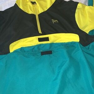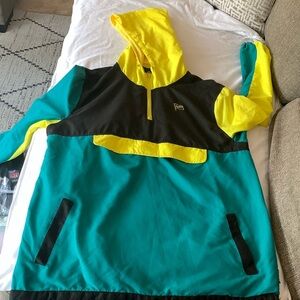 Gently Loved Brooklyn 100% Polyester Unisex Windbreaker Hoodie *No Drawstrings* Vibrant Colors No Rips and Or Stains Side Zipper Very Light Thin Polyester Material Front Stash Pocket and 2 Side Pockets!