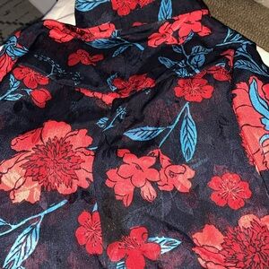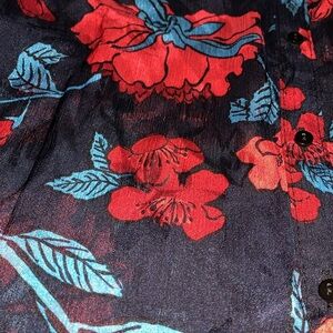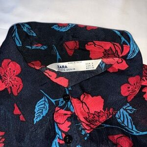 Gently Loved Crimped Chiffon Red Poppy Pattern Long Sleeve Blouse by Zara … Washed and Ready To Wear! No Rips and or Stains Noticeable to Me!