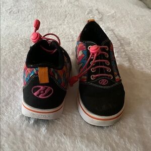Gently Loved Heelys Kids Zigzag Black and Pink Shoes