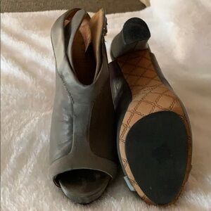 Gently Loved Leather and Silk trimmed Beautiful L.A.M.B heel bootie heels .. All my items come from smoke and pet free home. Accepting all reasonable offers!
