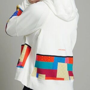 This is Beautiful Unisex and No Longer Sold In Stores this was a special edition for “Chinese New Year” Colab with Converse. Stylish hoodie with vibrant patchwork sleeves. Features a front pocket and drawstring hood. **Washed and Ready to Wear**