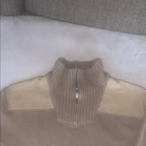Stay stylish and comfortable with this tan sweater featuring cream canvas accents. Perfect for any occasion, by Patagonia .. Fantastic Quality Lambswool !