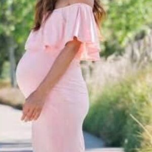 Gently Loved Ruffle Off Shoulder Mermaid Maternity Gown/Dress by PinkBlush…This Dresss Was Only Used 2 x’s .. Literally For The PhotoShoot, and Then For The Baby Shower.. Style is Timeless, Material Is Super Soft.. No Rips and Or Stains I Could See.