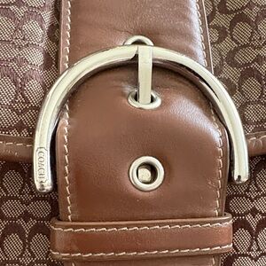 Vintage Authentic Gently Loved Elegant brown canvas and leather women's Coach Shoulder bag Perfect for any occasion.