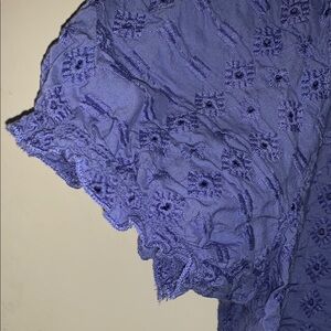 Beautiful Gently Loved Eyelet embroidered blue top perfect for any occasion. Features a stylish design for a chic look. Washed and teady to wear!