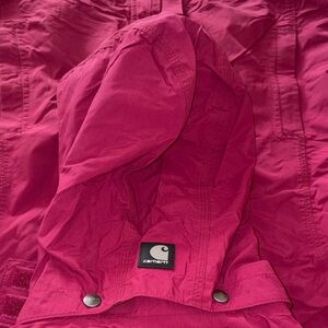 Stylish burgundy hooded jacket by Carhartt. Perfect for outdoor adventures.