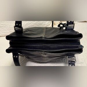 This Fossil black leather tote bag is perfect for any occasion. Its sleek design and durable material make it a must-have accessory. Ideal for both casual and formal settings.