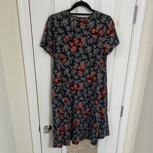 LulaRoe Jessie Dress. Small. Fits sizes: 6-8. Gently Used- Like New condition. Smoke Free Home. This dress has a swing silhouette, scoop neckline, and hidden side pockets. Color: Black, Gray, Red Roses green leaves