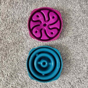 Gently Used Once Set of 2 Dog or Cat Slow Feeding Bowls in Purple & Blue