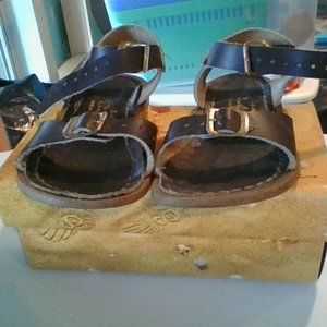 Gently Used Salt Water Sandals by Hoy. My daughter wore these about 5 times before she grew out of them. Barely look used accept for bottoms are slightly dirty- will clean them prior to shipping.
