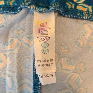 Gently Worn but Lovingly Cared For LuLaRoe Mandala Style Leggings. Women's Size TC (12-18). Machine Wash/Hang Dry. 92% Polyester/8% Spandex. These buttery soft leggings feature Mandalas in Orange, Bright Blue, and Tan on a Teal Background. Super comfortable for those days lounging around the house or for running errands. Some fading on the inside of the thigh (See the last pic above). No rips, pulls or stains, from a smoke-free home. Message with questions. I am not a consultant or otherwise affiliated with the brand.