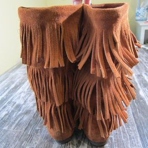 Gently Worn Minnetonka 3Layer Fringe Leather Boots