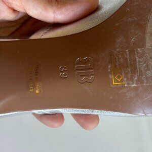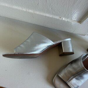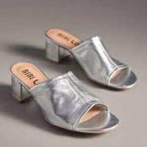 From Spanish Designer Bibi Lou, these metallic silver block-heel mules add a stylish punch to any look! Made from leather with a 2" block heel. Barely worn- in great condition. Size 39 (I'm a size 8 for reference).