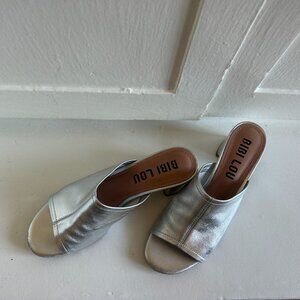 Gently Worn Silver Bibi Lou Block-Heel Mules (Sz 39)
