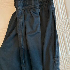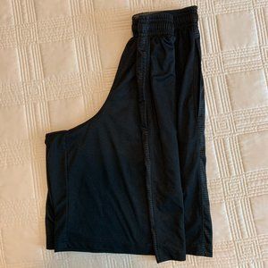 Gently Worn but Lovingly Cared For Under Armour Micro Printed Athletic Shorts in black with bright blue Under Armour logo. Men's Size SM/P: Loose. Waist: 12.5" (Unstretched) and 17.5" (Stretched). Length: 20." Inseam: 10." Machine Wash/Tumble Dry. 100% Polyester. These light and comfortable athletic shorts feature mesh hand pockets, a covered elastic waistband with internal drawcord, a signature moisture transport system that wicks sweat away from the body, lightweight durable stretch materials that let you move with extreme comfort, and a full, loose fit for enhanced range of motion and breathable comfort. Middle of Under Armour logo missing (see pics above). No rips, pulls or stains, from a smoke-free home. Message with questions.