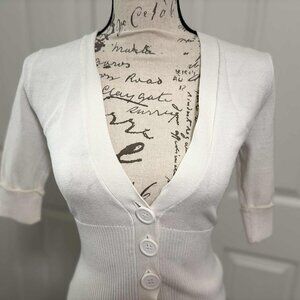 ☆ Gently Worn Women's White Half Sweater with Buttons & Cuffed Sleeves