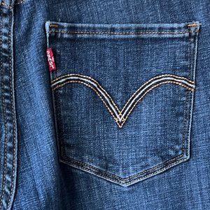 These leg-lengthening mid-rise bootcut jeans are made with equal parts style and comfort for everyday wear, and the Levi's Sculpt with Hypersoft is super-soft for enhanced comfort with supportive stretch. They feature light embroidery details and a medium wash, a zipper front with a button closer, five-pocket styling, and a slightly arched back yoke. Outfit them with your favorite cropped tee and chunky sandals or sneakers.