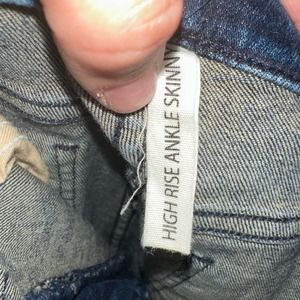 Two-tone dye effect gives these high rise ankle skinnies a unique look all their own.