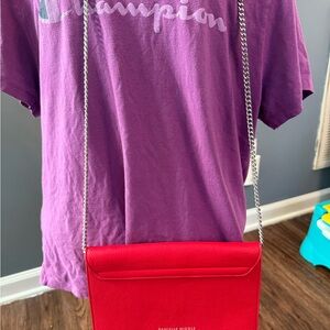 Gently used Danielle Nicole red leather shoulder bag doesn’t show any sign of use however there’s a few nicks which are shown in pictures