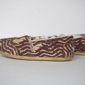 Gently used TOMS. Still in great condition and hardly worn. See pictures for the wear. Still have the original box with everything included when I bought them new. Love these shoes but I don't wear them anymore and would love for them to go to a new home where someone can actually use them! Super cute and fun pattern/style. Honestly, they really go with a lot of different outfits and that's what I was going for when I originally bought them.