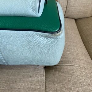 Used Coach court backpack it’s not perfect a few scuffs on the bottom. Keychain tag included (no chain)