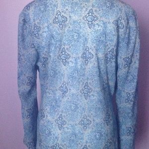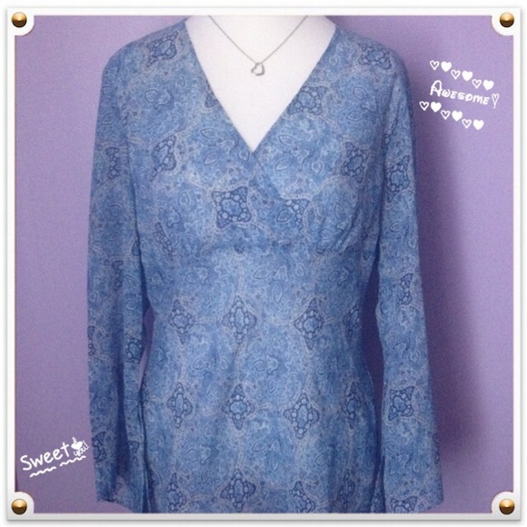 Gently used peasant style top! One of my favorites! Actually, I would not be selling it if I was still able to wear it, but alas, I never lost all of the dreaded "baby weight"! Ugh! It had one of those itchy tags, so I don't know sz or brand but size wise it's DEF a L/XL. I also believe it's very close to 100% polyester. The sleeves come down to an angled point with a slit that goes up about 4 or 5 inches as shown in pic. Additional pics available and questions welcome! Offers considered!
