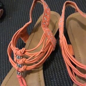 Coral sandals with gems. I bought them from Marshall’s. Size womens 8. Gently used.