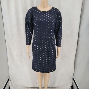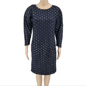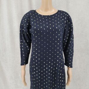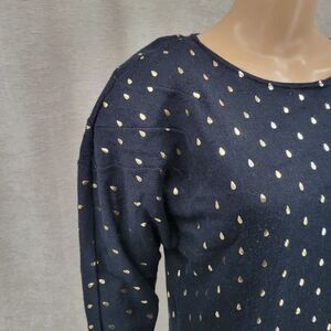 Stunning 80s Sweater Dress. Made in Italy. 75% Pura Lana/ wool, 25% angora. Black Dress with metallic gold foil tear drops. Puffed up sleeves with thin shoulder pads. Close up shows small hairs. This is the angora woven in. I've had it professionally dry cleaned. it is in great condition, no holes or stains. Fall, Statement Piece, trending, high end- well-made