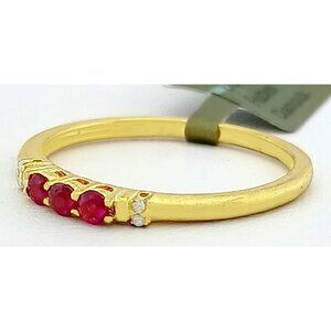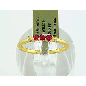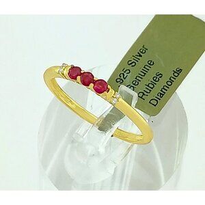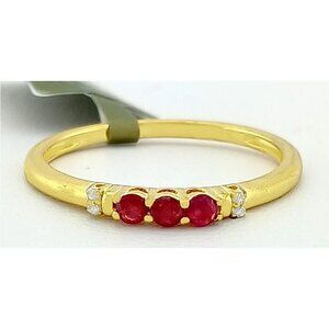 Genuine 0.14 Cts Ruby & Diamond Ring 14k Yellow Gold Plated