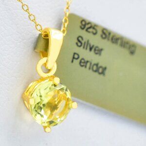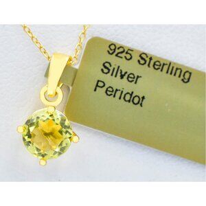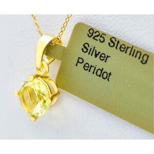 Genuine 0.95 Ct Peridot Pendant Necklece 14k Gold Plated (.925 Silver)