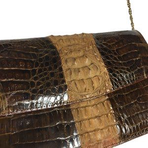 Genuine 100% Crocodile Hornback Clutch Bag with Chain