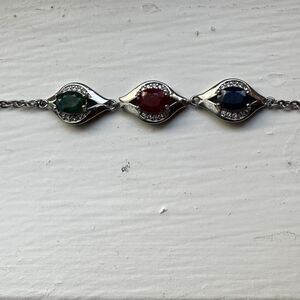 Genuine 1.25ct each Ruby, blue sapphire, and emerald in .925 bracelet!