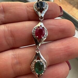 This is a handmade from Pakistan, stamped sterling silver with genuine 1.25ct (each) of ruby, blue sapphire and emerald, surrounded by little cz diamonds!