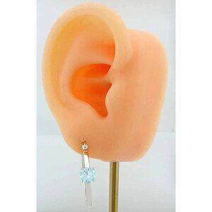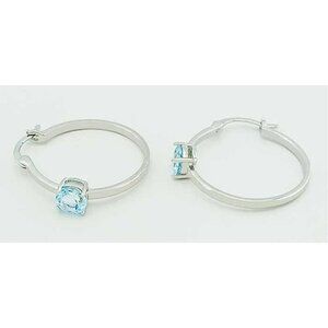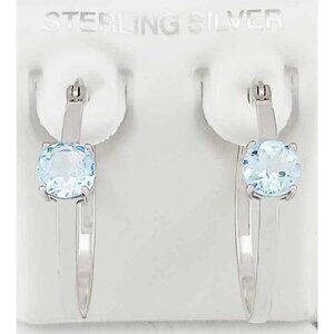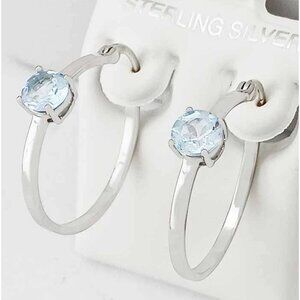 Genuine 2.10 Cts Aquamarine Hoop Earrings .925 Sterling Silver